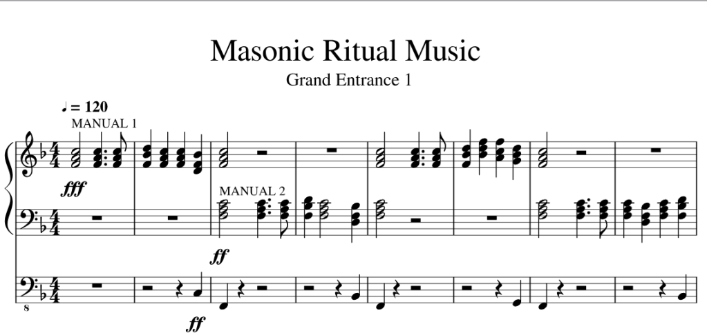Partie importante du rituel, la musique se doit d’être vectrice d’émotion et porter une Tenue. Peu étonnant donc que beaucoup de FF:. (connus ou non) soient ou aient étés compositeurs.