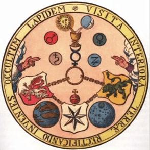 Enfin, la devise précise ce qui sera découvert : « la Pierre occulte », référence directe à la pierre philosophale. Substance légendaire de l’alchimie, celle-ci est censée permettre la transmutation des métaux vils en métaux précieux ou la production d’un élixir de longue vie, la panacée. Le mythe de la pierre philosophale est attesté au moins depuis l’Antiquité, notamment chez Zosime de Panopolis ou Ostanès. Il dépasse largement l’Occident. Dans les traditions hindoue et bouddhique, on trouve ainsi le chintamani, joyau exauçant les souhaits et symbole de transformation spirituelle. D’un point de vue plus symbolique, de nombreux auteurs soulignent que, pour l’alchimiste philosophe, le chemin importe davantage que la transmutation matérielle elle-même. Il s’agit avant tout d’une transformation intérieure de l’alchimiste. En psychanalyse, Carl Gustav Jung voit dans la pierre philosophale une métaphore culturelle du processus d’évolution psychique de l’être humain.